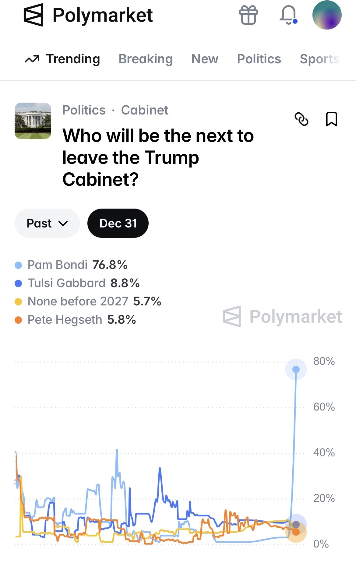 - South Carolina: 50% (65% of Graham is nominee; 35% if Lynch or Dans is nominee)