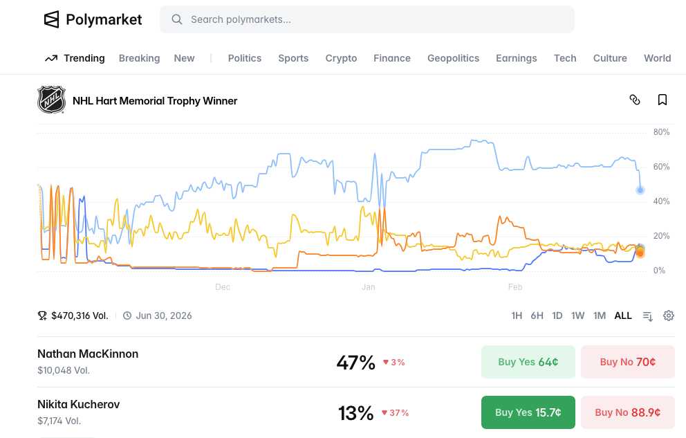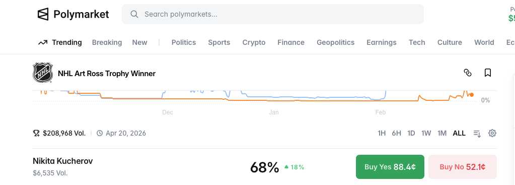 My Kucherov NHL Polymarket bets.
