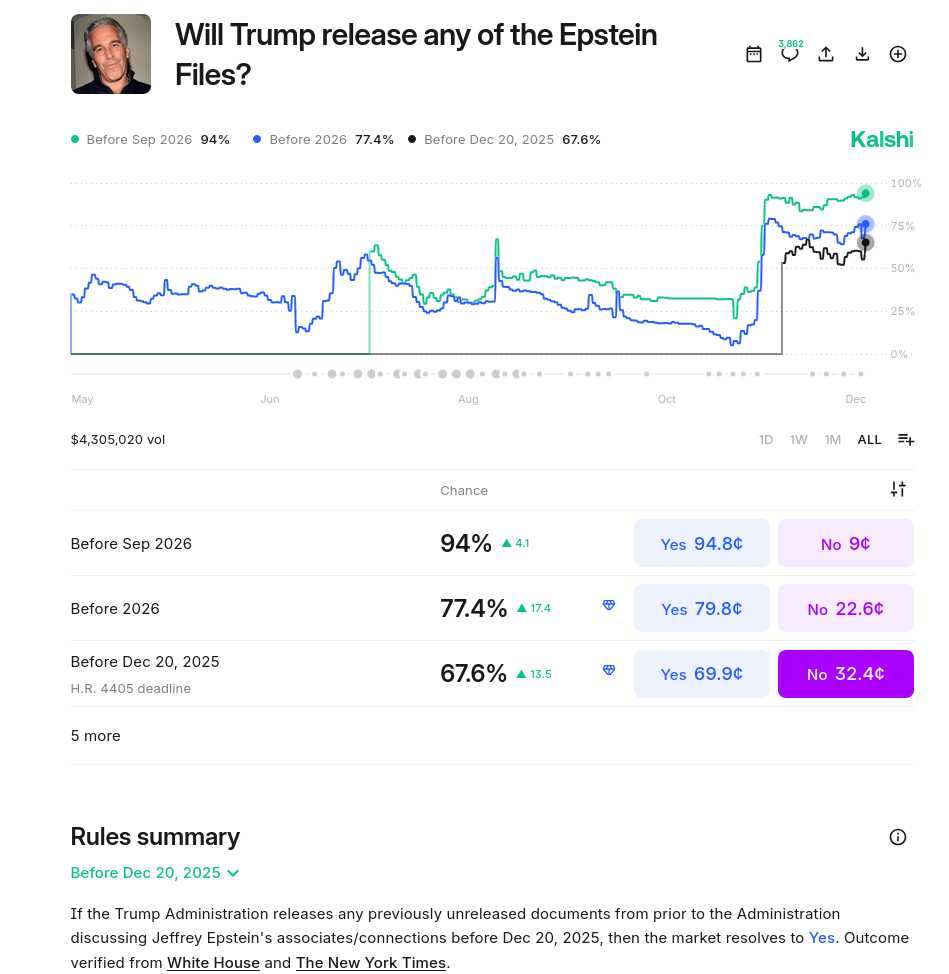 5% Epstein Files Disclosed by December 20, 2025 at 62% (good to 90%)