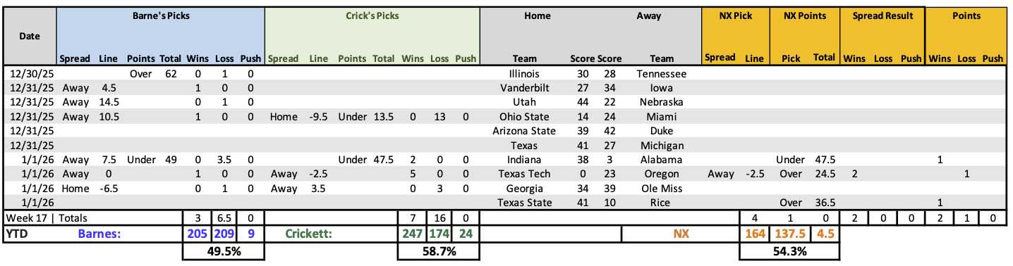 Week 18 NX NCAAF Picks:
