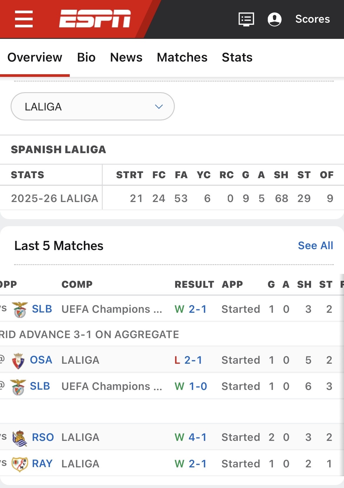 Vinicius jr 6 goals in 5 games